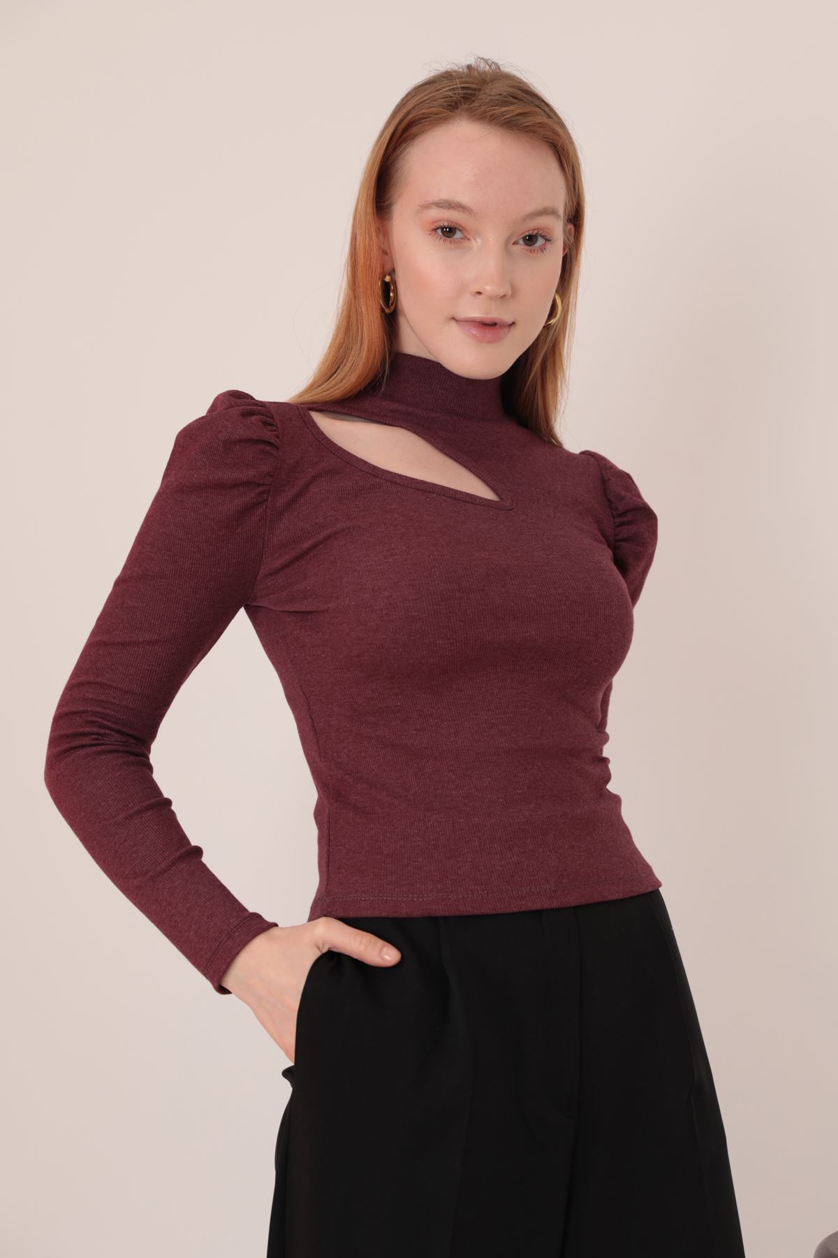 Kaşkorse Kumaş Karpuz Kol Pencereli Kadın Bluz