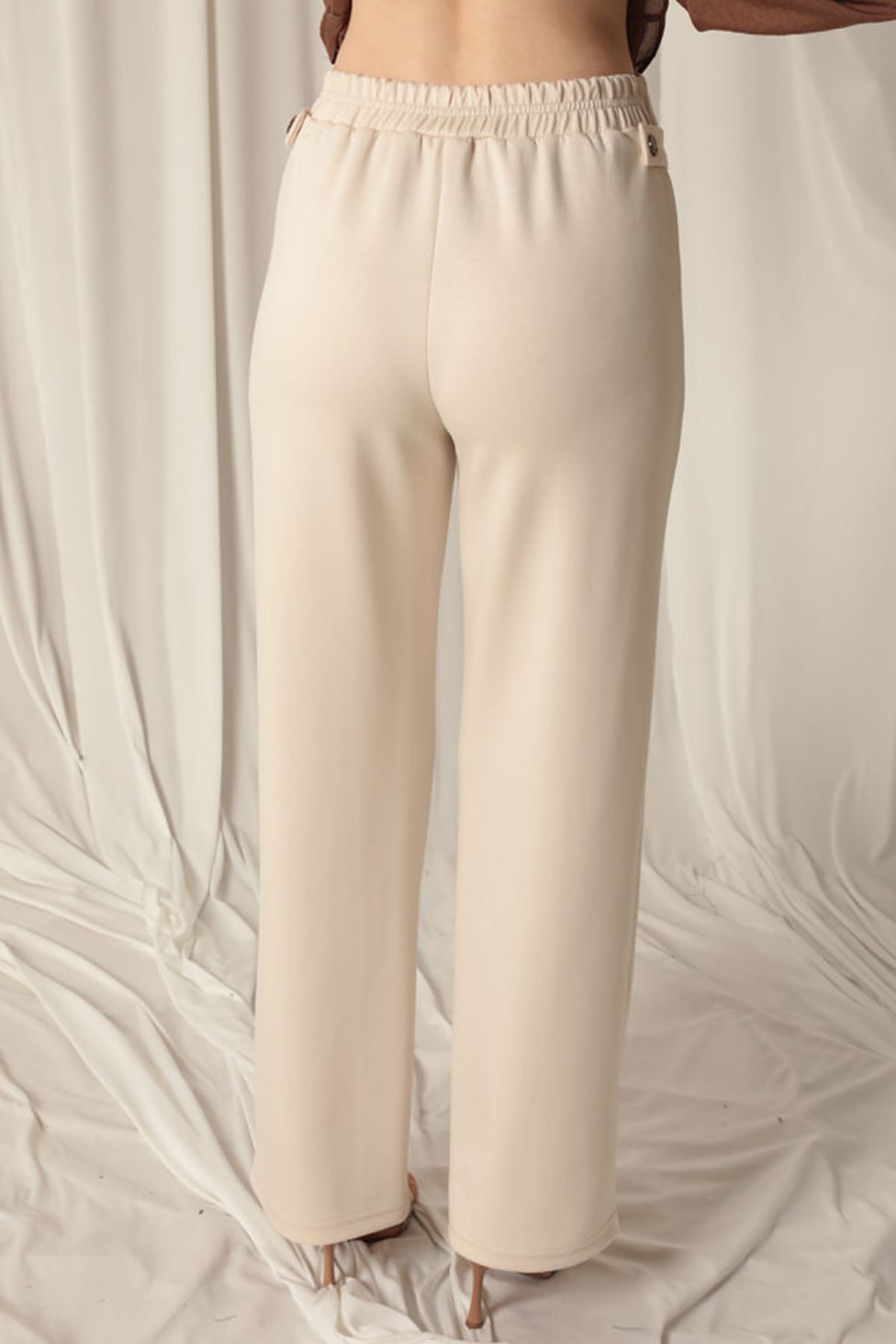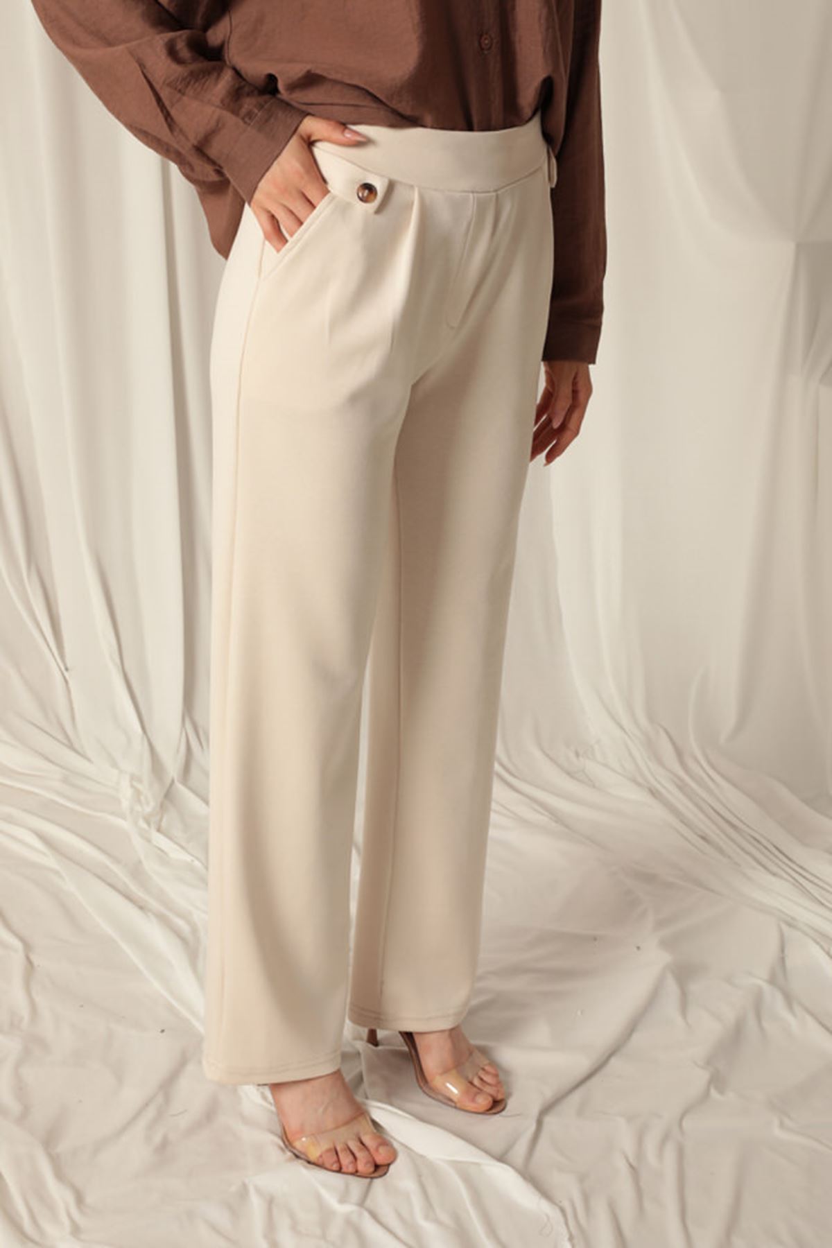 بنطال نسائي من القماش المودال باللون البيج مزود بأزرار على الجوانب