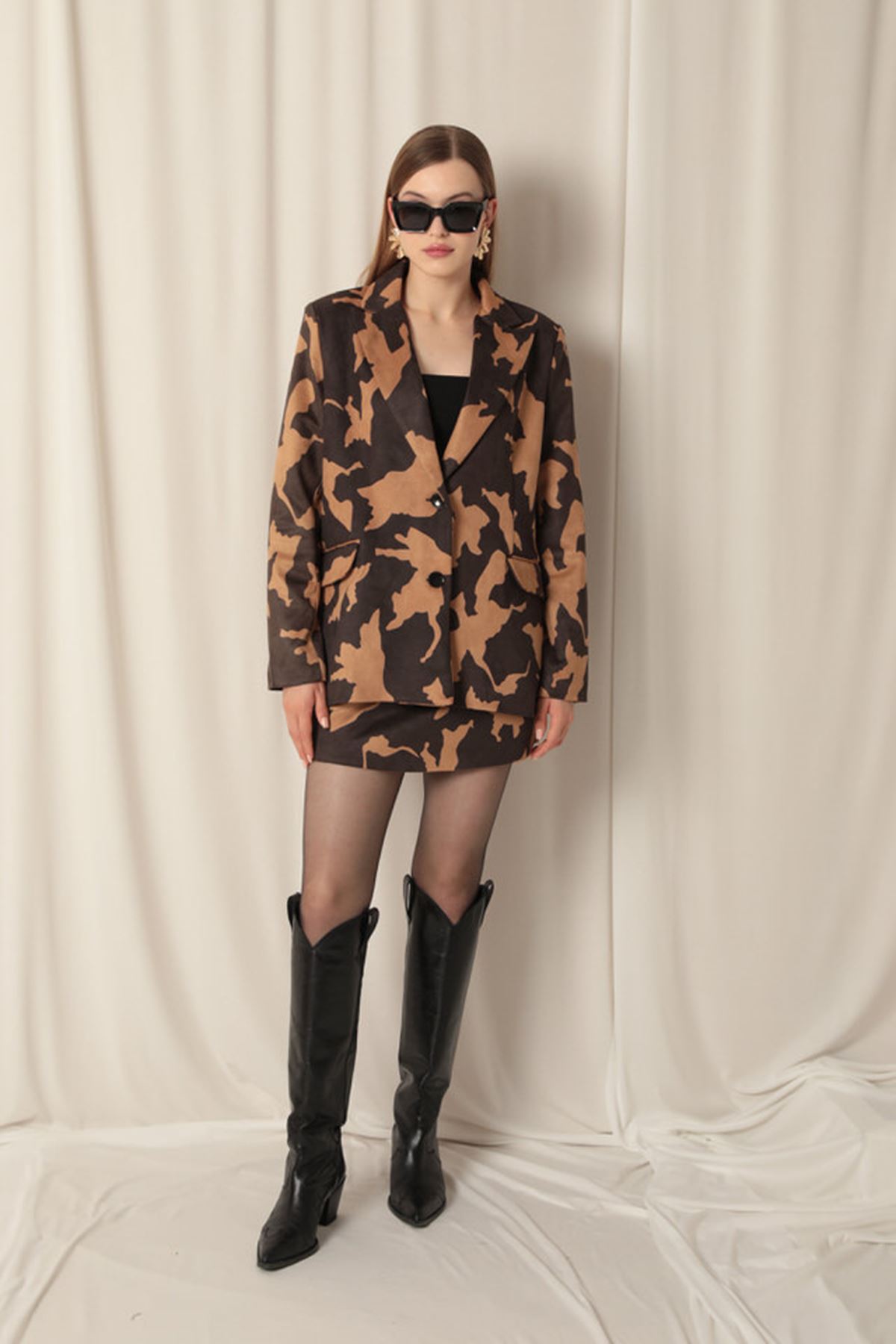 مجموعة القهوة النسائية منقوشة من جلد الغزال