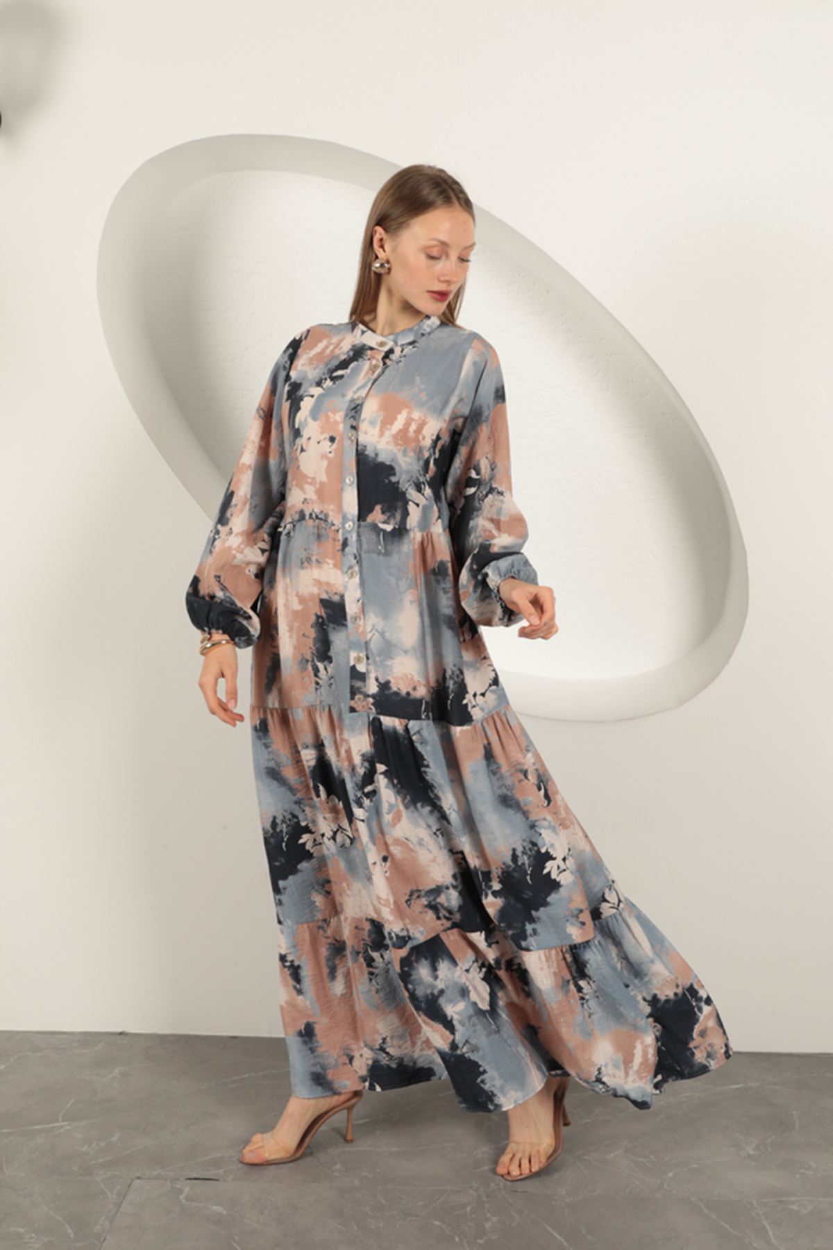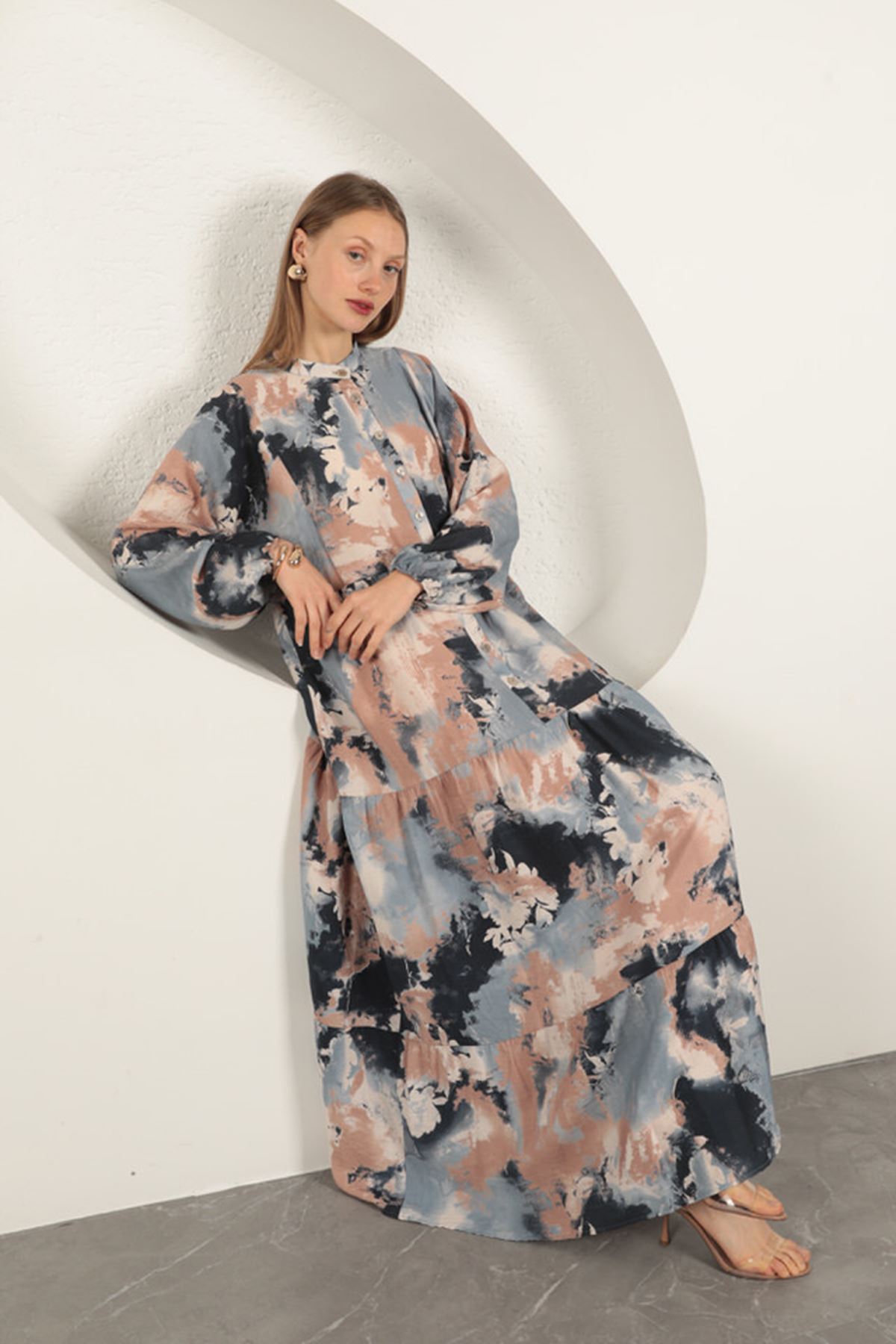 فستان نسائي بنمط الألوان المائية - أزرق داكن