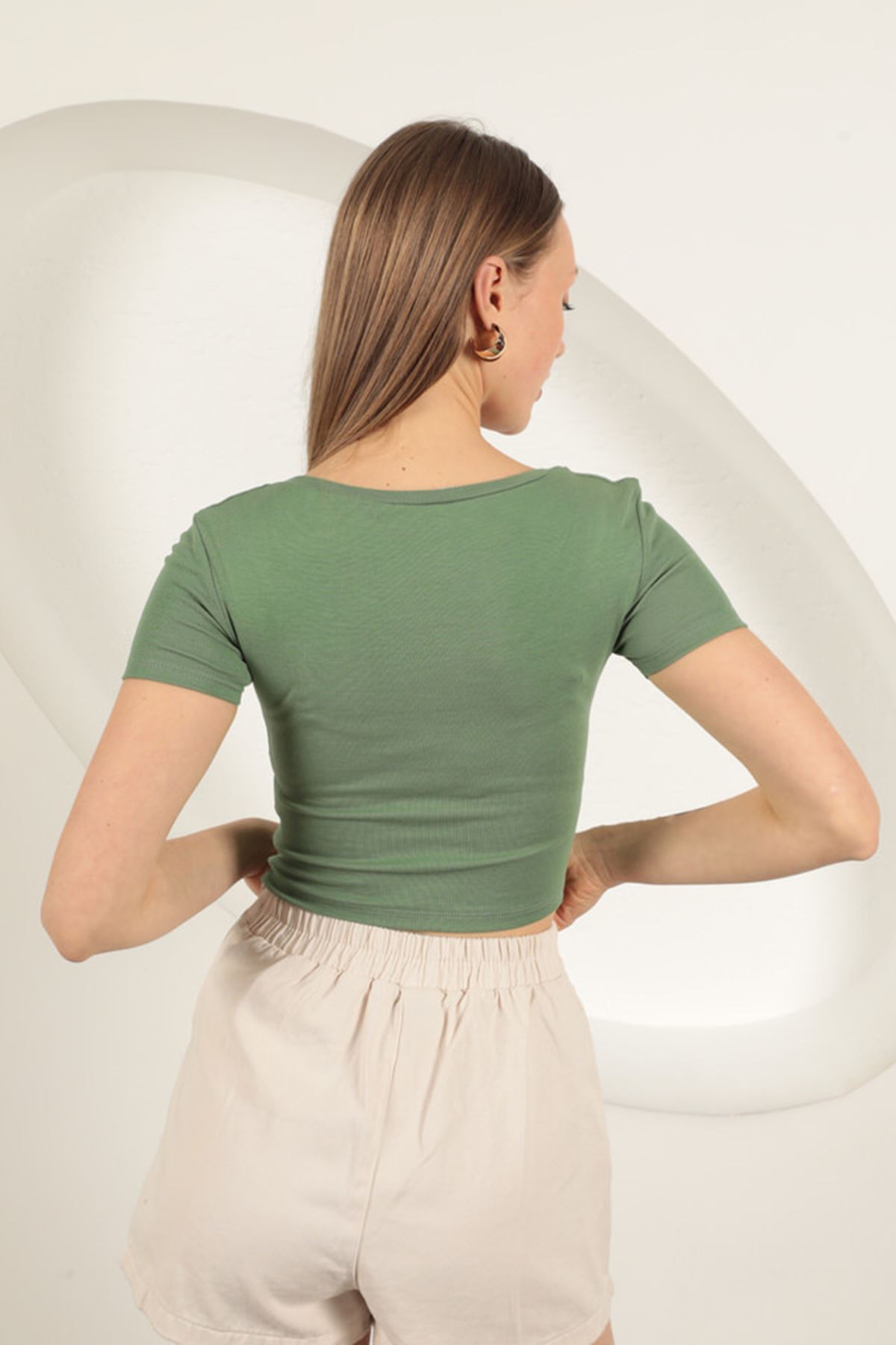 تي شيرت أساسي برقبة على شكل حرف V - كاكي