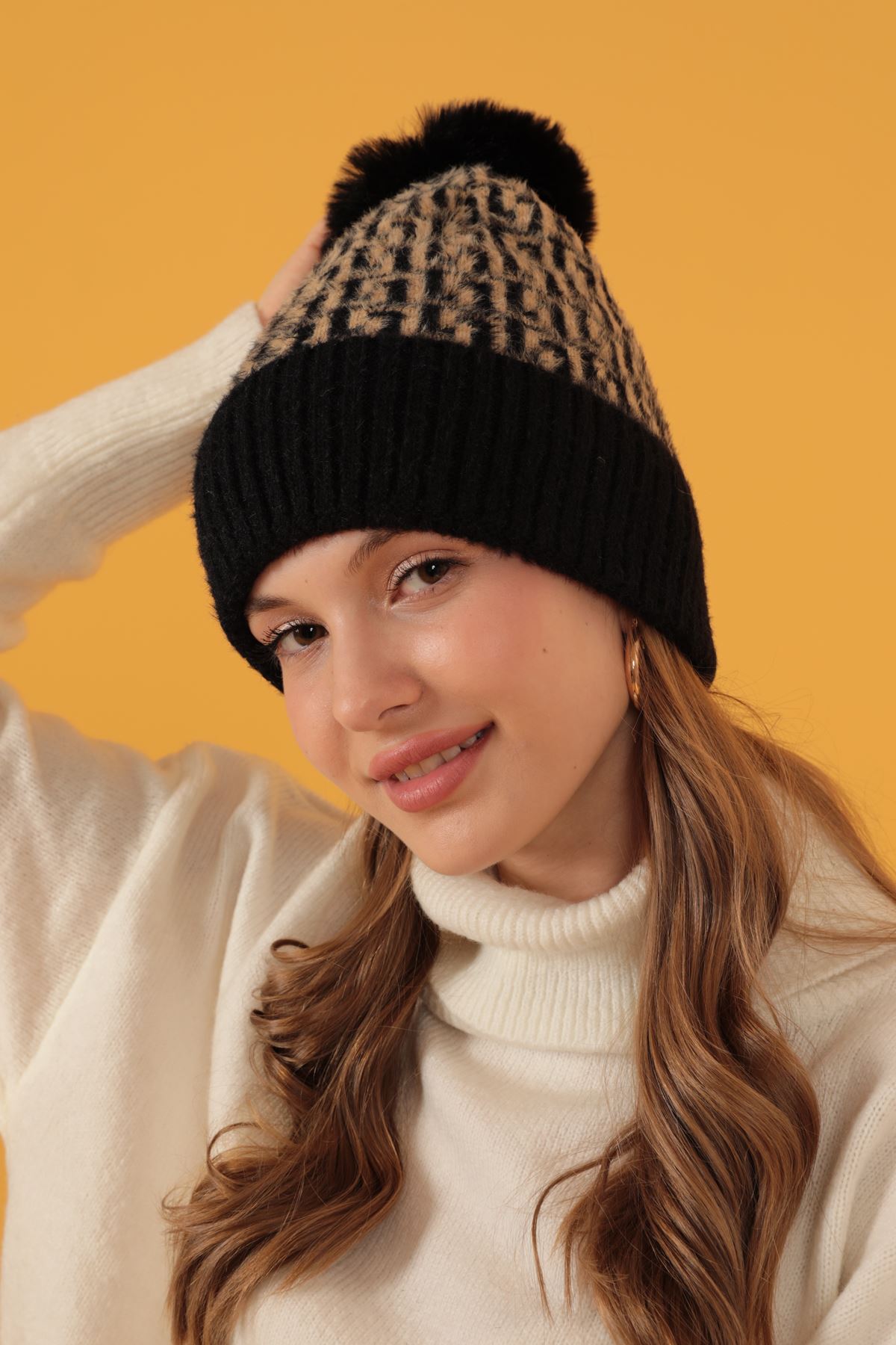 Jakarlı Siyah Triko Bere