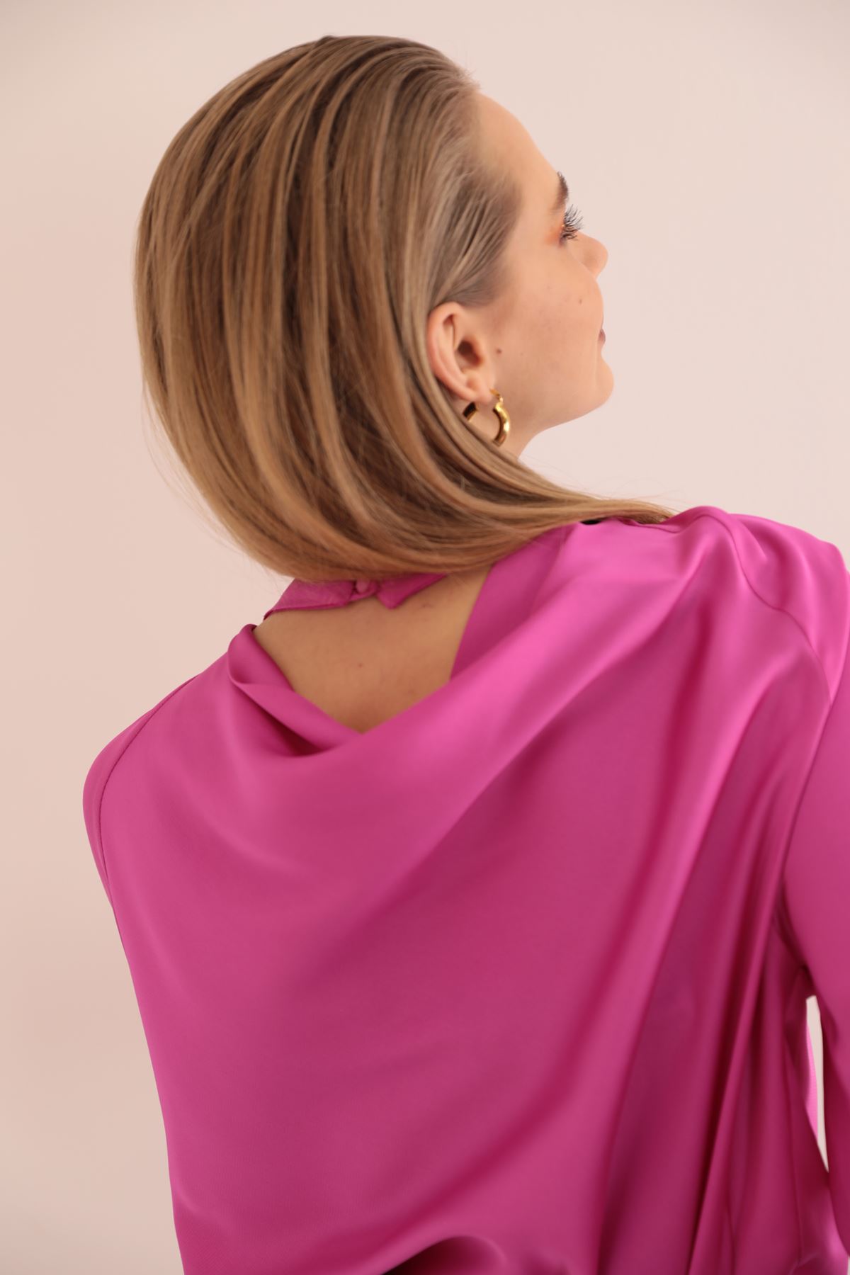 Kobe Satin Fabric Back Detail Women Blouse-Fuchia