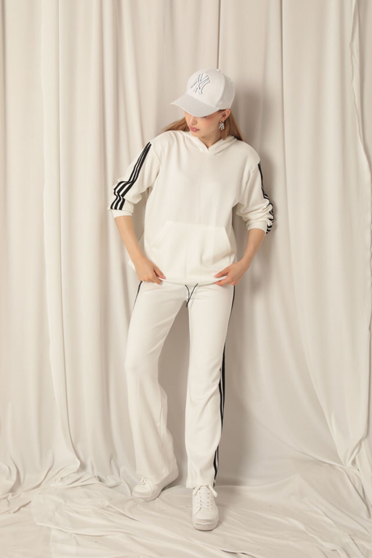 Modal Fabric Striped Hooded Women's Ecru Suit