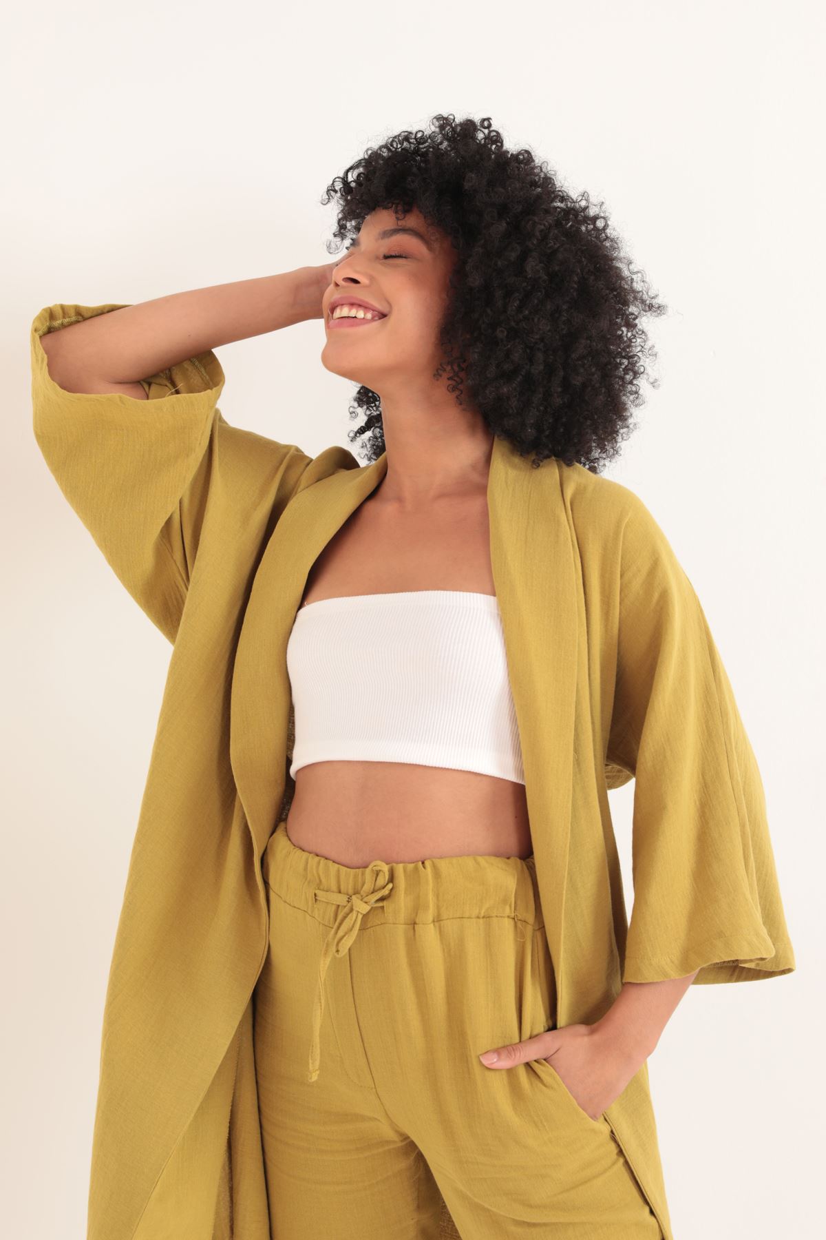 Muslin Fabric Oversize Women's Kimono-Oil Green