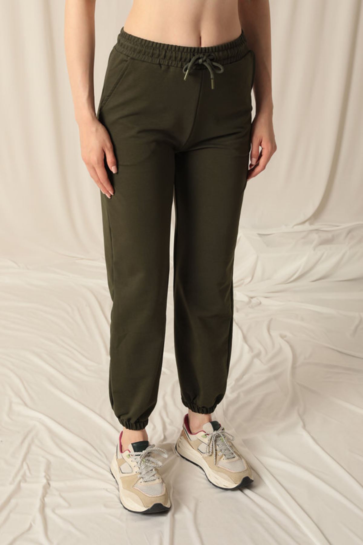 Women's Khaki Tracksuit with Elastic Legs and Two Yarn Fabric