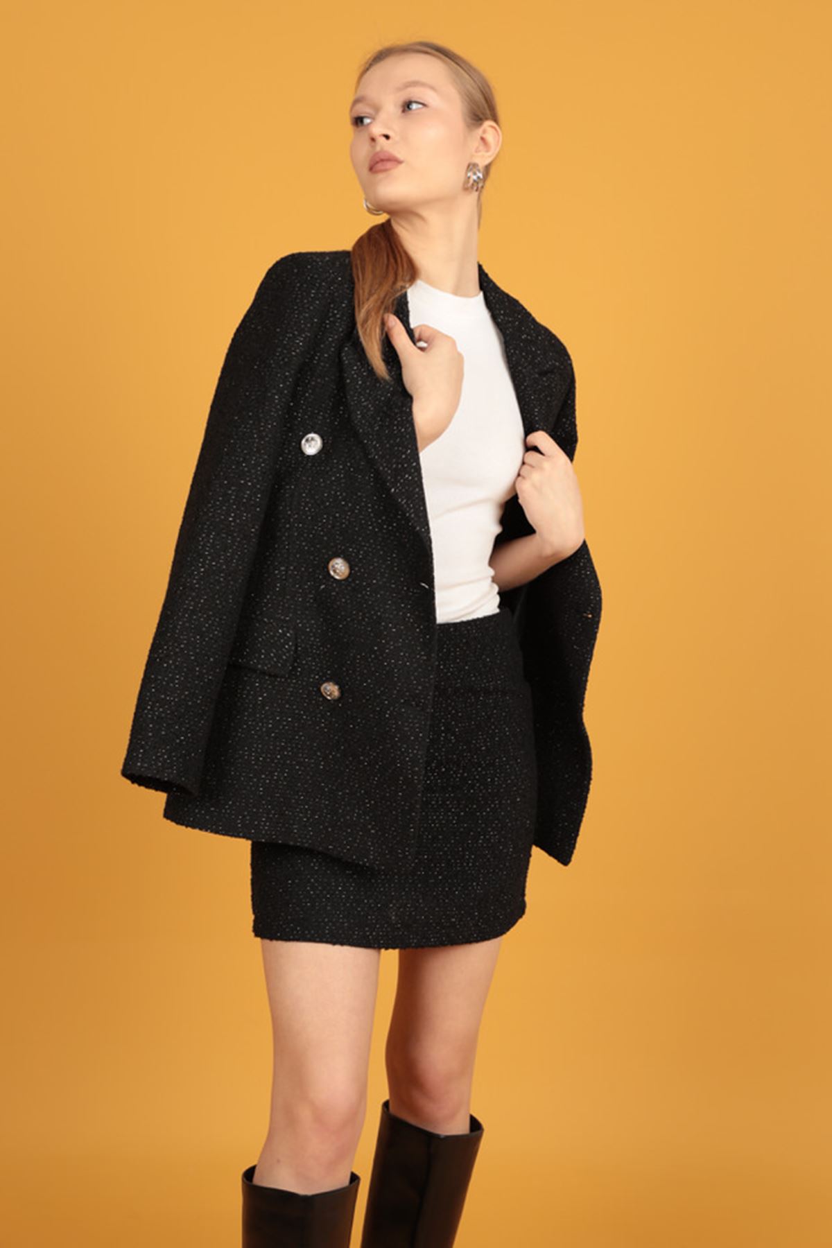 Women's Mini Skirt with Shiny Detail-Black
