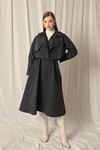 Женский черный тренч с тканым дизайном