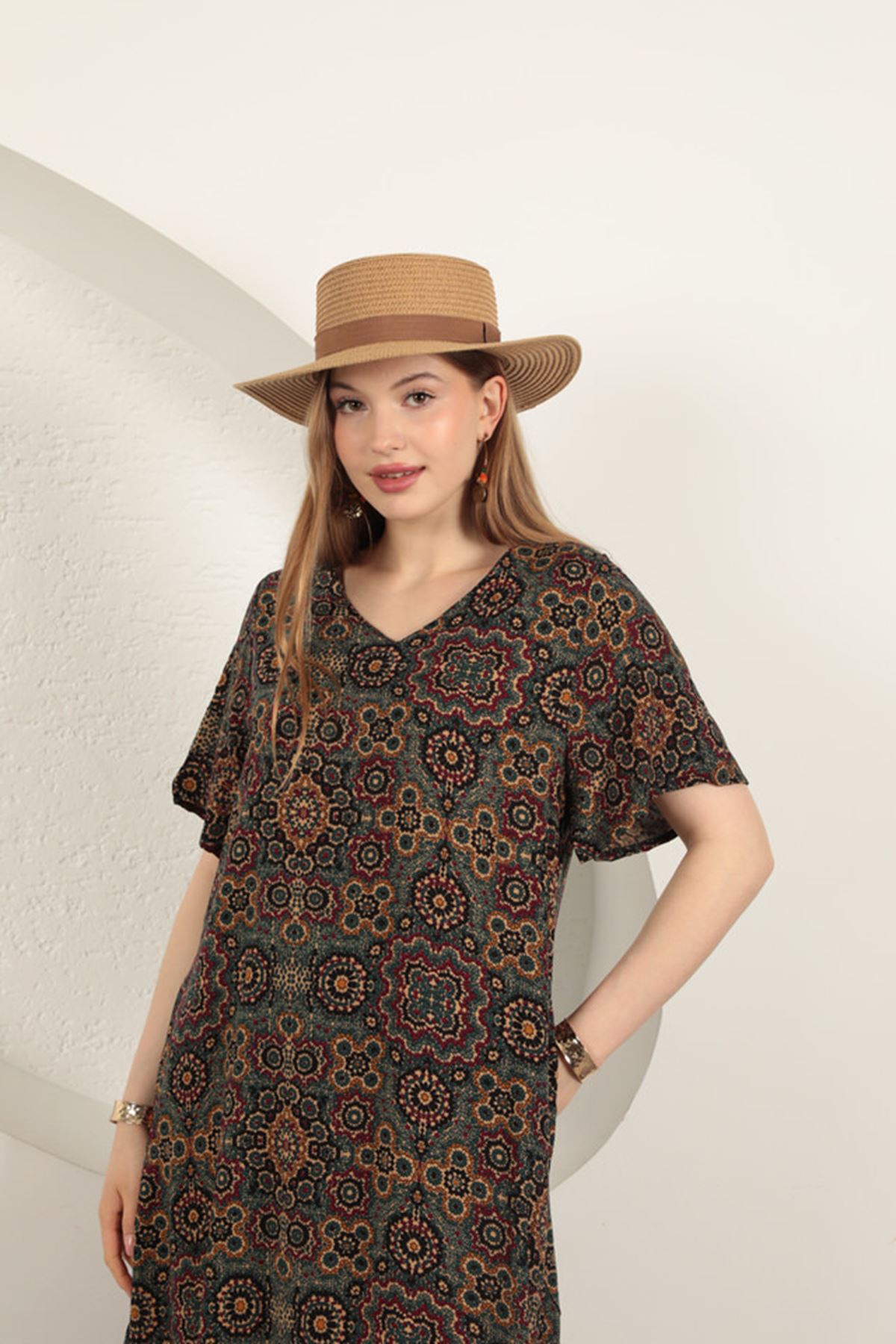 Этническое платье из вискозной ткани - зеленый