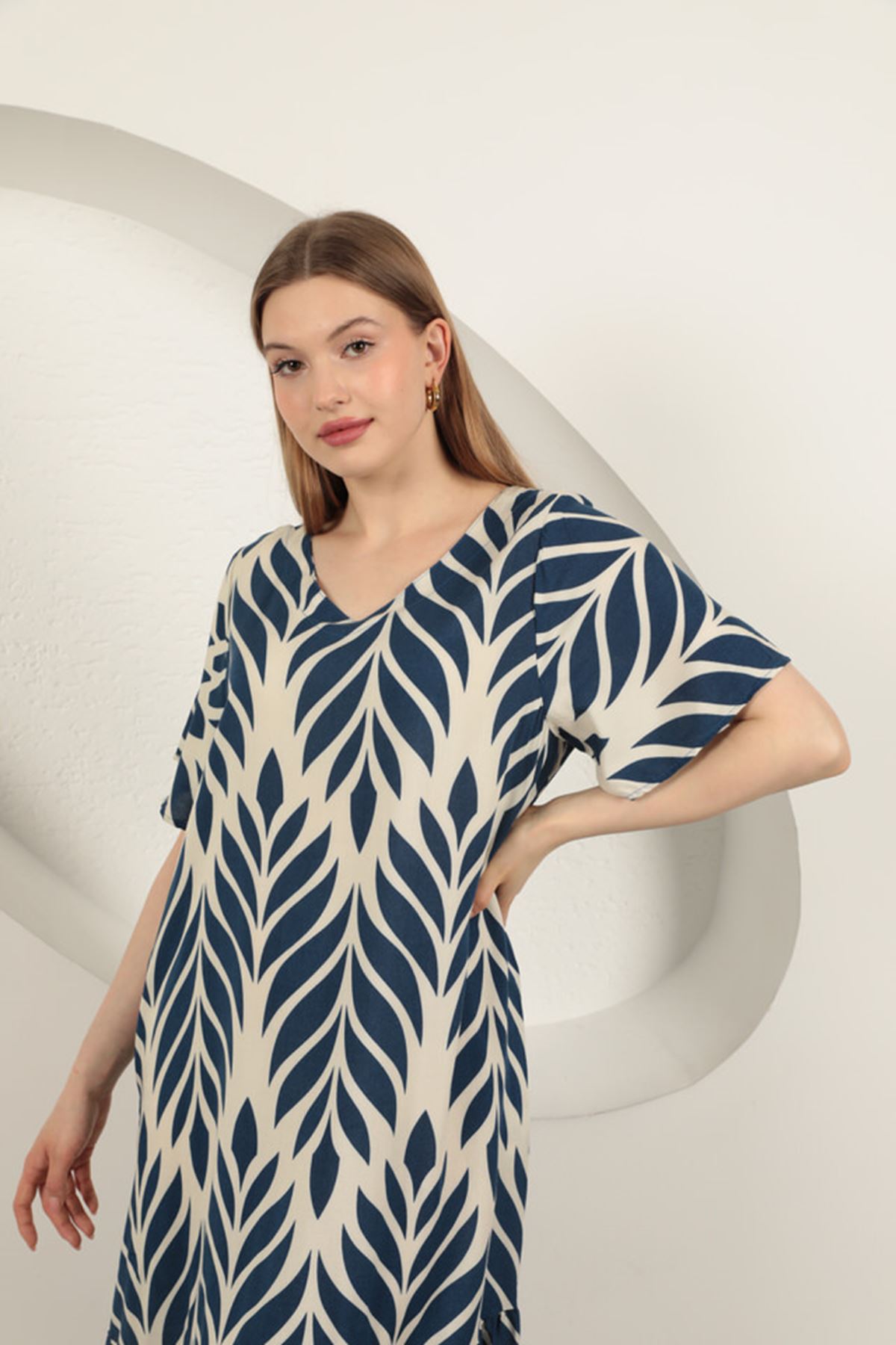 Платье из вискозной ткани с узором из листьев - темно-синий