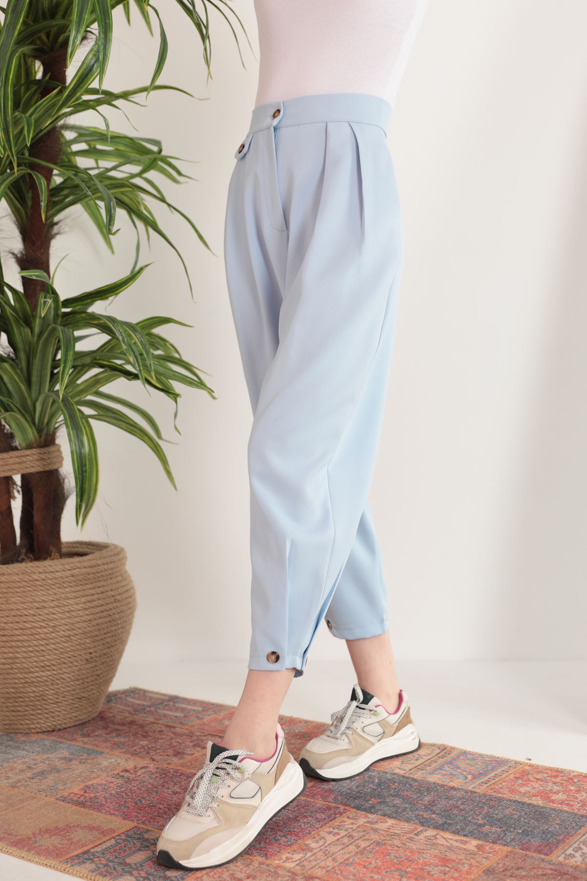 Atlas Kumaş Pileli Şalvar Kadın Pantolon-Bebemavi