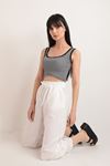 Kaşkorse Çizgili Kadın Crop-Kırmızı