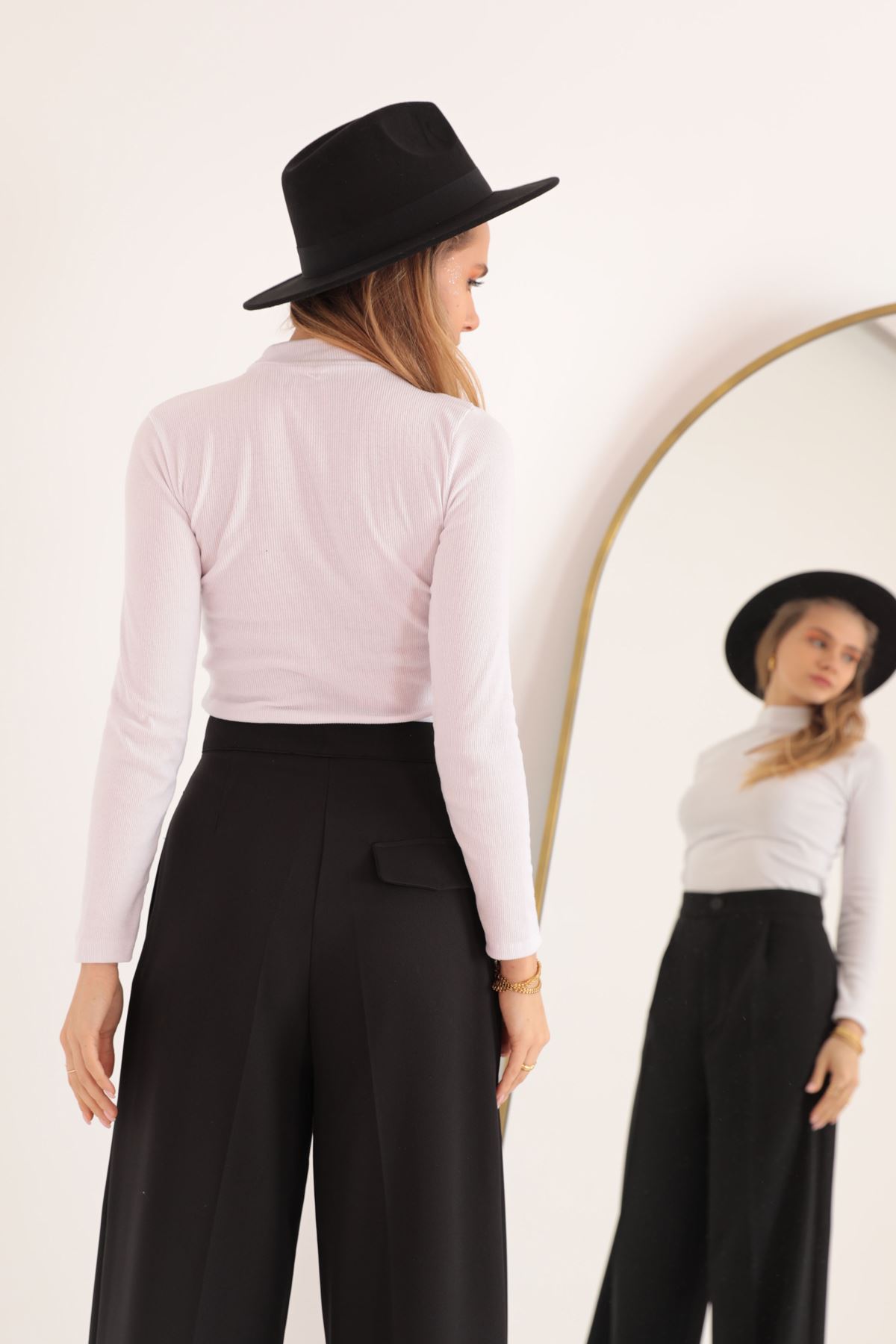 Kaşkorse Kumaş Damla Esprili Balıkçı Yaka Kadın Bluz