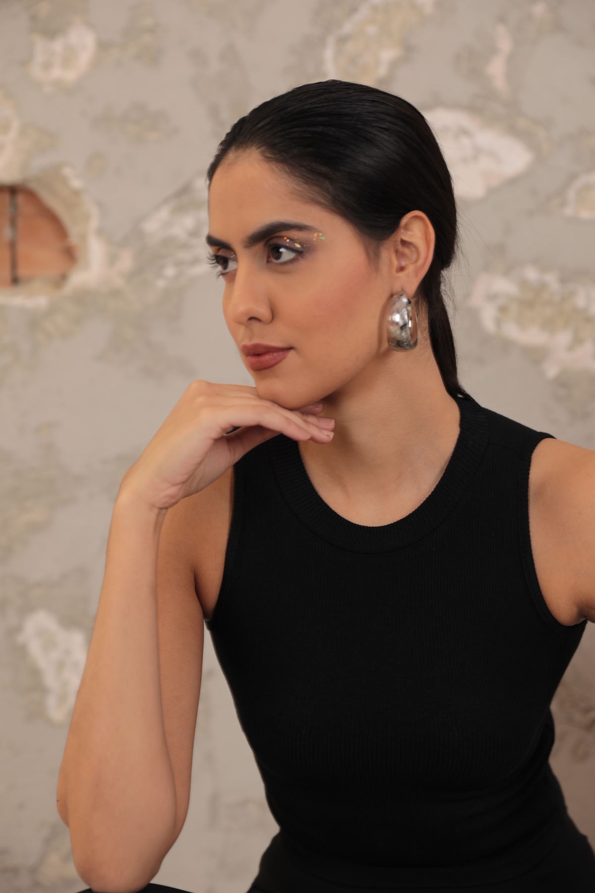 Kaşkorse Kumaş Geniş Bisiklet Yaka Kolsuz Kadın Bluz-Siyah