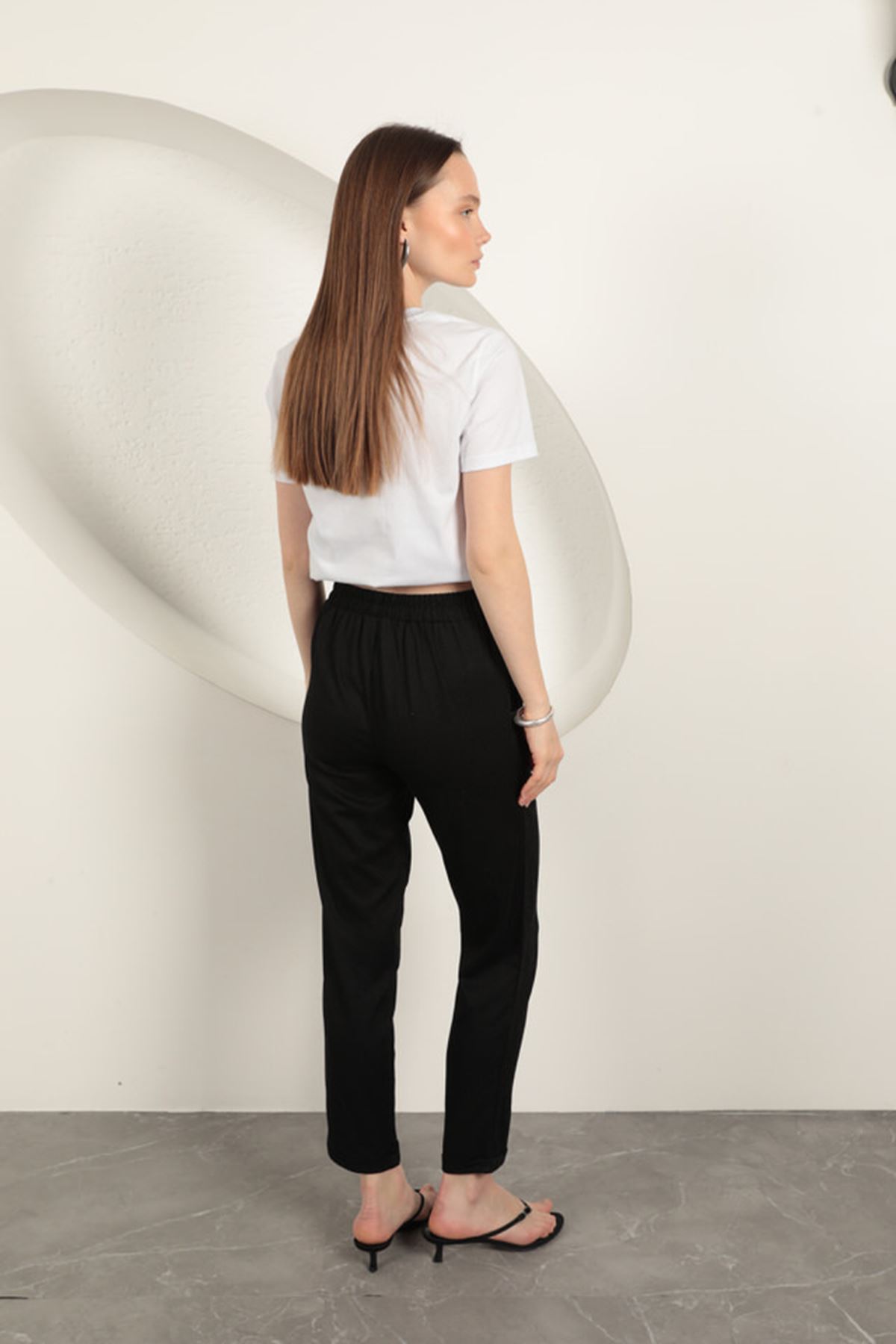 Modal Kumaş Duble Paça Kadın Pantolon-Siyah