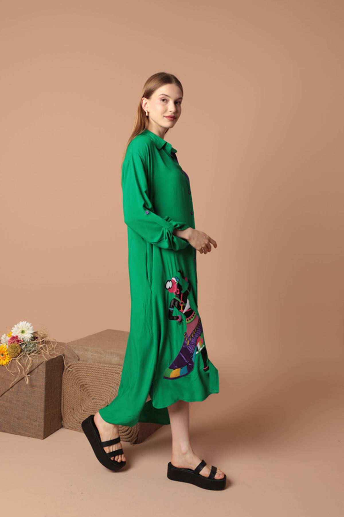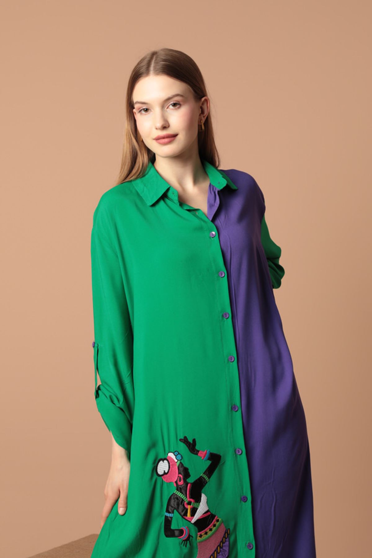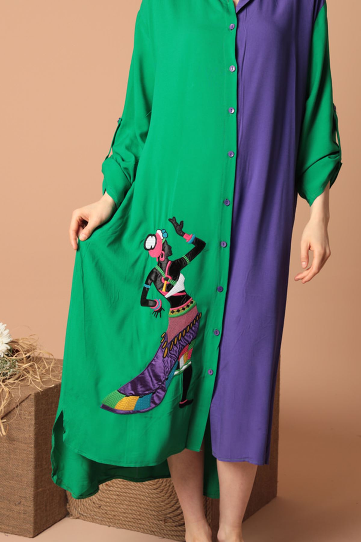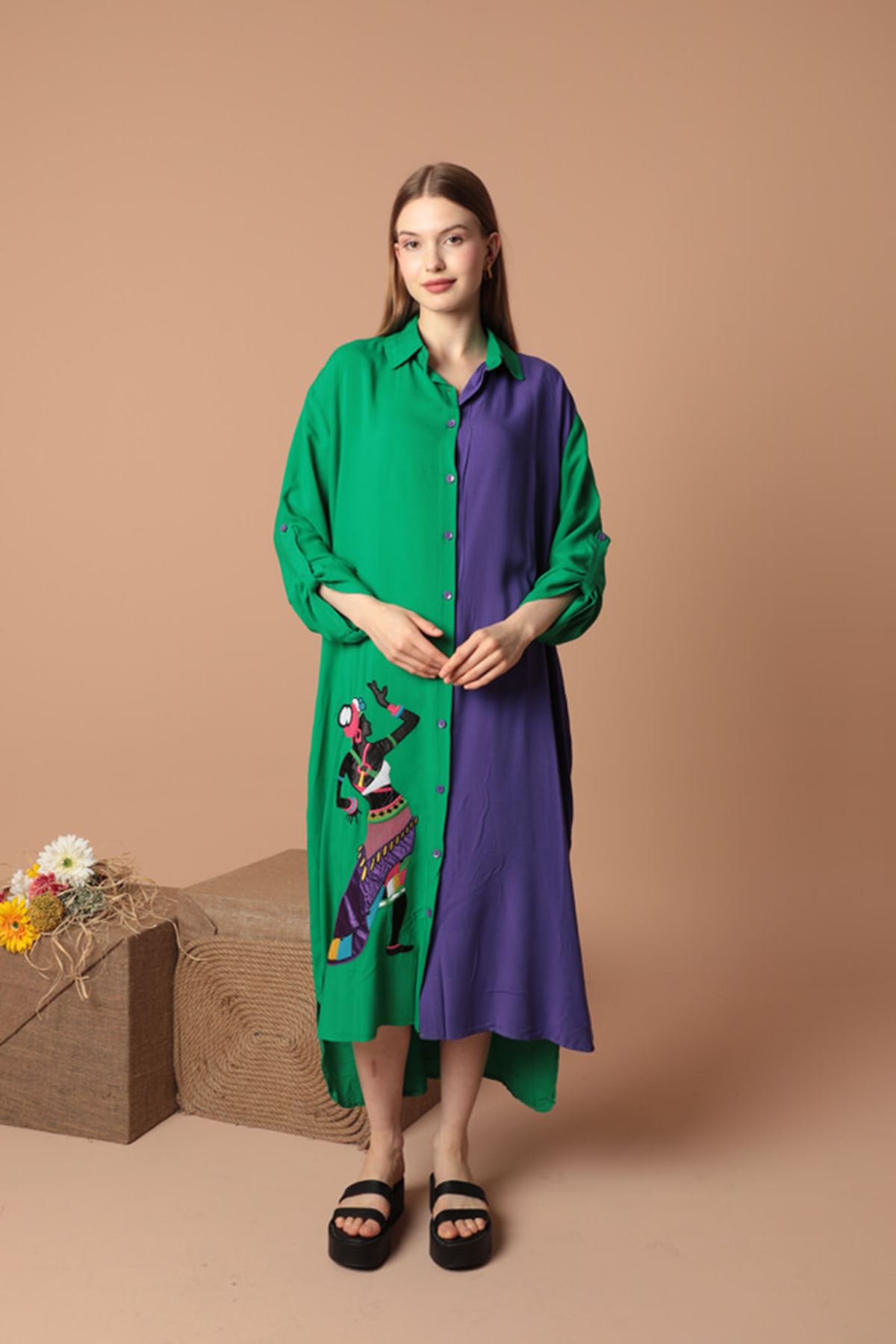 Viskon Kumaş Aplike Nakış Mor Kadın Gömlek Elbise, zarif detaylarla modern bir şıklık sunar. Yumuşak ve akıcı viskon kumaş, rahat bir giyim deneyimi sağlar. Aplike nakış detayları, elbiseye sanatsal ve sofistike bir dokunuş katarak, onu öne çıkarır.Toptan alımlarda koleksiyonunuza estetik ve zarif bir parça ekleyerek, müşterilerinize şıklık ve konfor sunabilirsiniz.