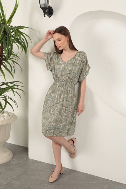 Viskon Kumaş Çiçek Desenli Elbise-Mor